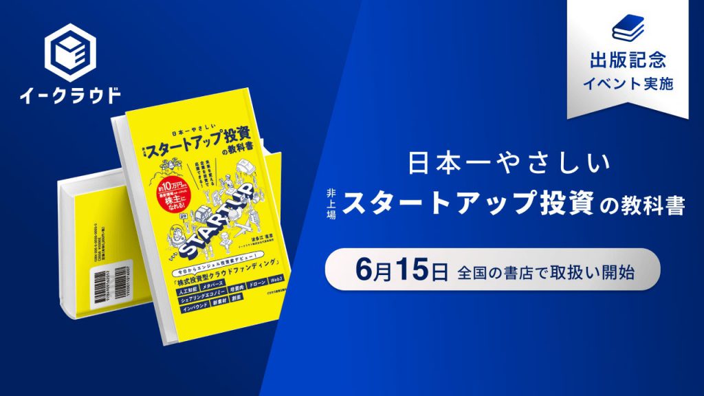 株式投資型クラウドファンディングサービスを提供するイークラウド株式会社(東京都中央区、代表取締役:波多江直彦、以下「イークラウド」)は『日本一やさしい非上場スタートアップ投資の教科書』(著者:波多江直彦)をビジネス教育出版社より出版し、6月15日から全国の書店にて取扱開始となります。出版を記念し、6月23日(日)には東京・銀座の投資家が集まるバー「STOCK PICKERS」にて、著者によるトークイベントを行います。