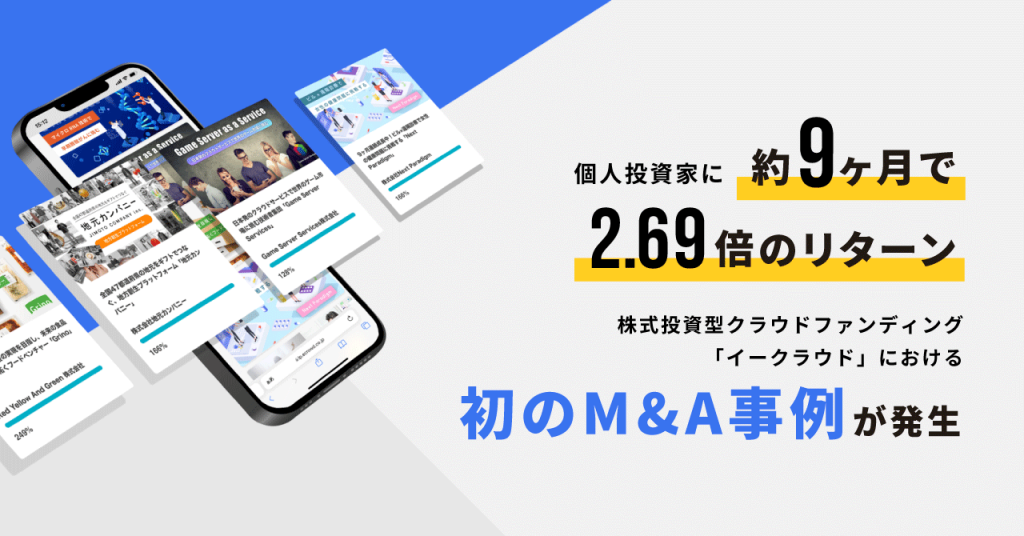 投資から約9ヶ月で個人投資家に2.69倍のリターン。株式投資型クラウドファンディング「イークラウド」における初のM&A事例が発生