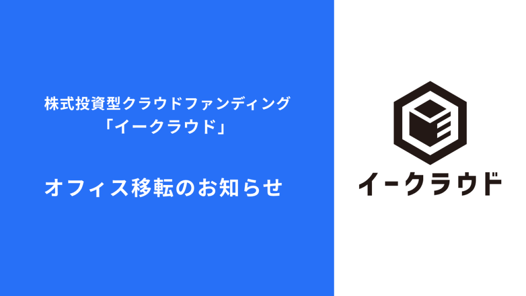 株式投資型クラウドファンディングを運営するイークラウド株式会社は2024年9月1日より、オフィスを東京都千代田区大手町の「FINOLAB(フィノラボ)」に移転することをお知らせします。