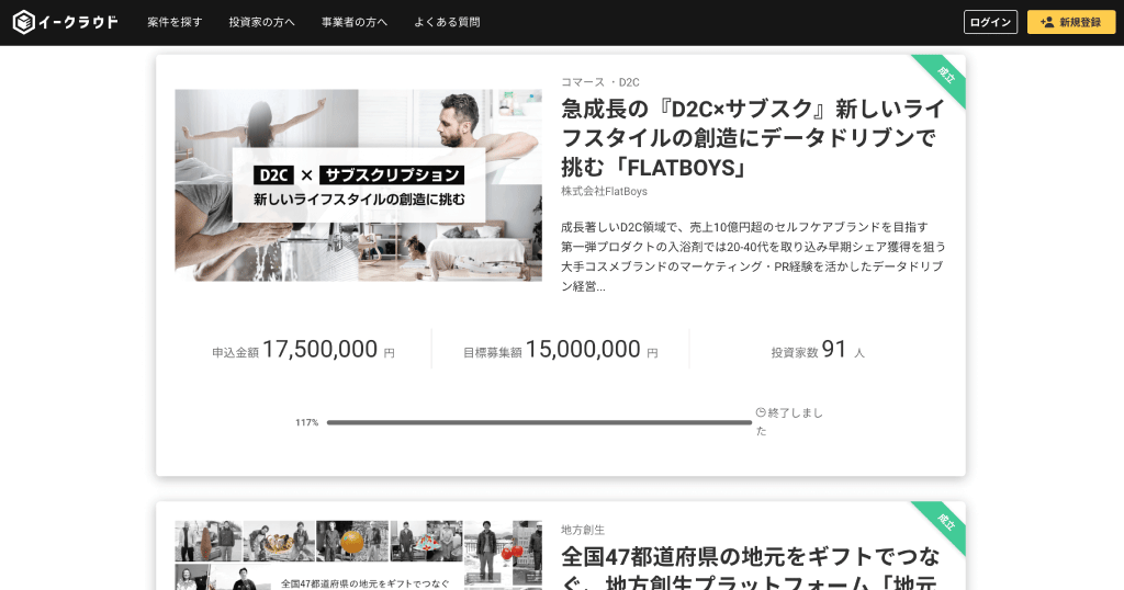 ▼株式投資型クラウドファンディング「イークラウド」のサービスサイトはこちら