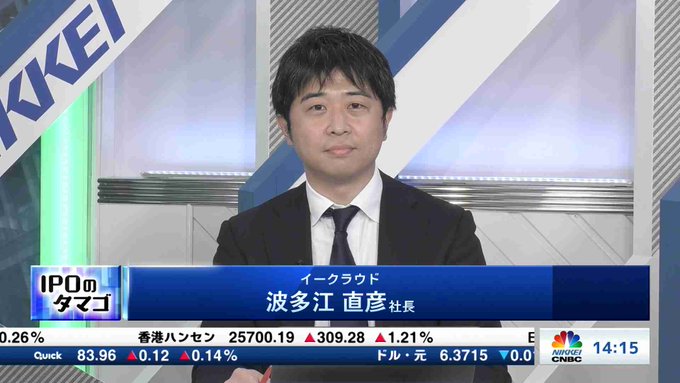 2021年11月16日、日経CNBC「昼エクスプレス」内の「IPOのタマゴ~磨けイノベーション」のコーナーに、イークラウド代表取締役の波多江が出演させていただきました。